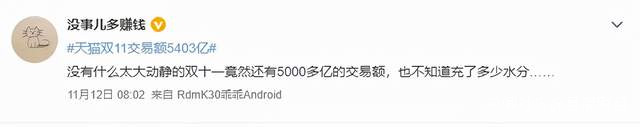 這讓網友們開始猜測,今年雙十一這麼冷清,天貓甚至都不公佈實時成交額了,是不是這5403億元還中也有水分?