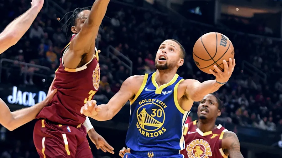 庫裏投了三個三分球,嚇得騎士擴防,然後全隊輪流內切上籃,單節籃下11投9中,把騎士打崩了。