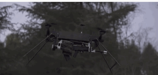 另外一款則在飛行控制上做的比較好,用上了矢量多旋翼技術,所謂的矢量多旋翼大家可以理解為戰鬥機的矢量發動機,每個旋翼都是獨立控制獨立運行的,通過飛行控制編程,幾個旋翼通過改變功率、方向等方式,能夠給步槍射擊提供穩定的射擊環境,以不大的尺寸就為95提供了穩定的射擊環境,我覺得控制流明顯技高一籌。