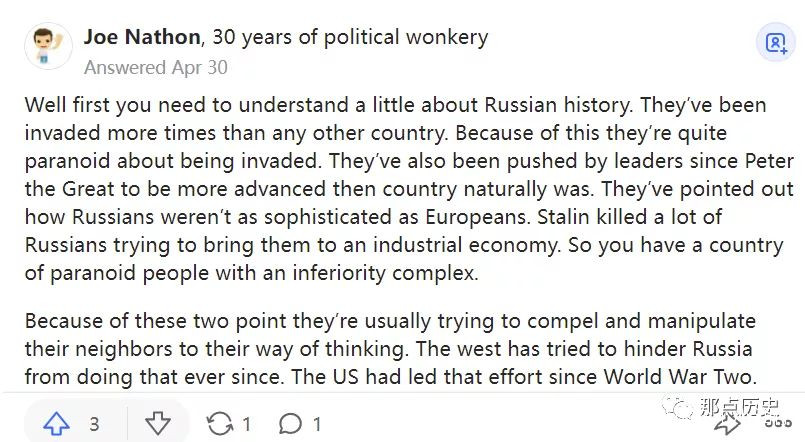 首先你需要了解一下俄羅斯的歷史。他們被入侵的次數比任何其他國家都多。正因為如此,他們非常害怕被入侵。********************,因此,你有一個有自卑感的偏執者的國家。