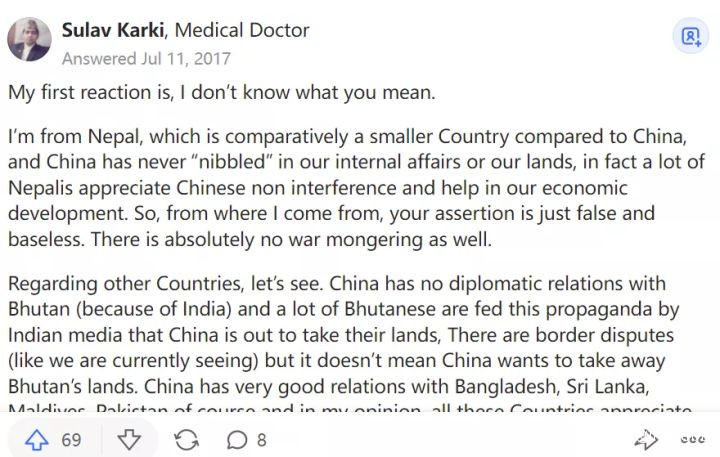 "為什麼中國不能停止蠶食小國的土地和戰爭行為?"黑中國的話題被尼泊爾網民打臉_風聞