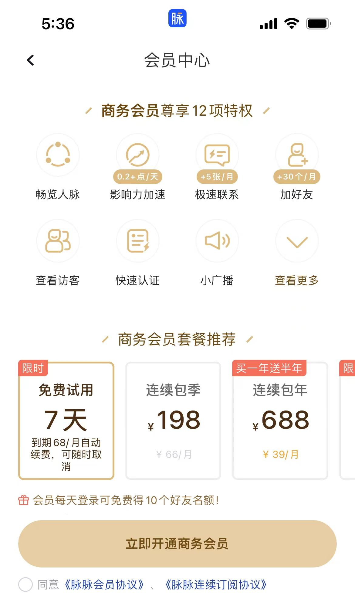 根據媒體報道,一位來自湖北的吳先生為了找工作方便,下載了“脈脈”App,並被“首充會員僅0.1元”的頁面吸引。於是,他點擊了金黃色的“0.1元立即開通”的按鈕付費0.1元開通了會員。