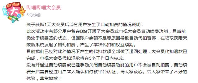 在今年7月15日,B站因為服務器發生故障,造成用户無法正常使用,為此,B站為了補償用户,專門贈送了1天的大會員,本來是件好事兒,但次日,因為自動扣費,導致營銷翻車。