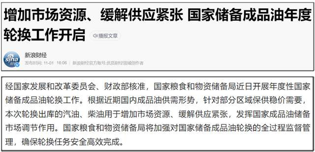 然後我又查了下資料發現,實際上早在10月31日,國儲局就發佈公告稱“近日開展年度性國家儲備成品油輪換工作。”