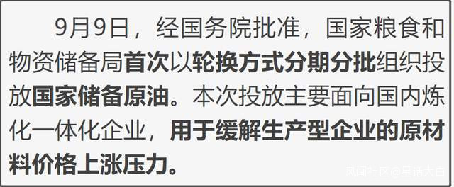 而且,我們早在9月9日就做了首次以“輪換方式”分期分批投放國家儲備原油。