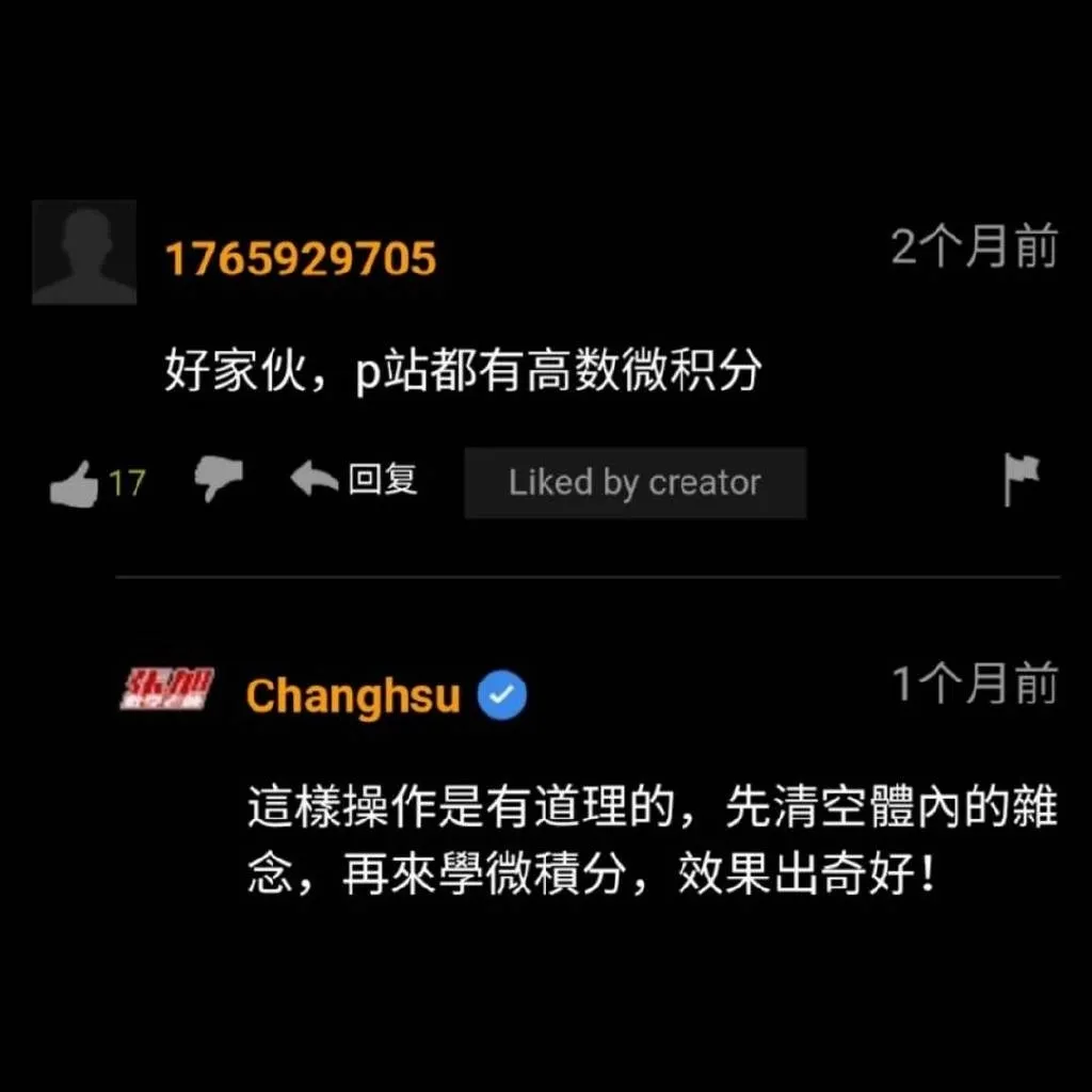 比如,當有人問,為什麼要在P站學微積分,他回答:這樣操作是有道理的,先清空體內的雜念,再來學微積分,效果出奇好!