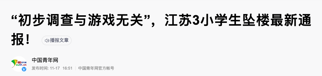 人們對這個新聞的批評點在哪裏呢?基本上都是劍指學校,但大多數時候學校針對學生安全問題的防控即便嚴防死守,依然解控不了孩子們心理上的問題。