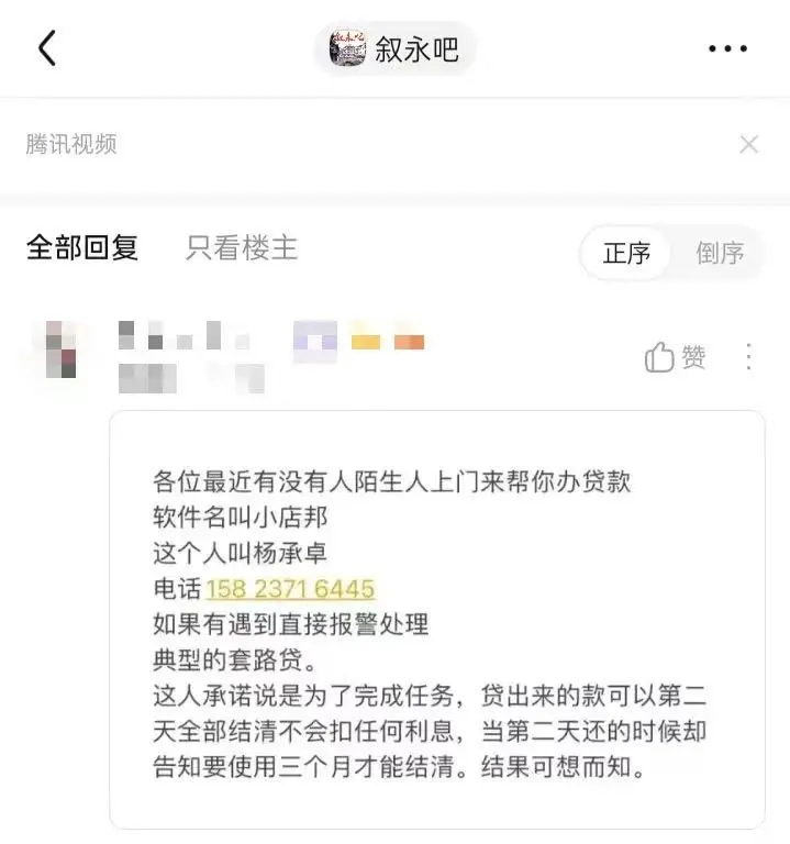 「鐳射財經」發現一些用户直接把小店邦業務員的個人信息公示,提醒大家“小店邦是典型的套路貸”,如果有遇到直接報警。該受害人稱,小店邦業務員承諾貸款可以第二天全部結清,不會收任何利息,當第二天還款時被告知要使用三個月才能結清。小店邦業務員所屬企業為上海數桑信息科技有限公司,該公司執行董事兼總經理為徐志剛,而徐志剛正是數禾科技實際控制人。