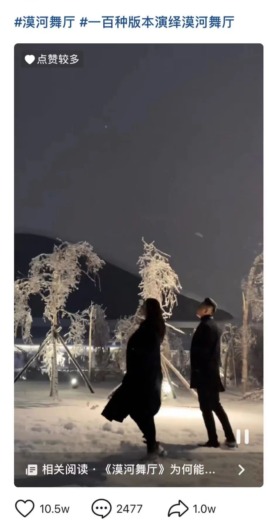 還有一些人説這首歌可以給人帶回1980年代的舞廳。這就更扯了,那時舞廳流行過的金曲,不論是節奏動感的荷東猛士的士高,柔情似水的鄧麗君,還是特別適合交誼舞的《北國之春》,都無《漠河舞廳》這般扭捏的調調。