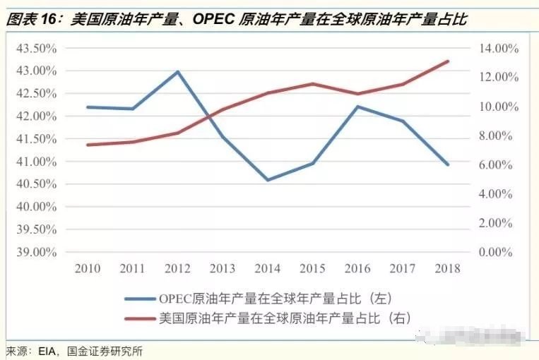 過去美國依仗全球霸權,壓迫歐佩克減產,然後歐佩克減產的份額實際被美國頁岩油所替代。這就相當於美國直接從歐佩克腰包裏搶錢。