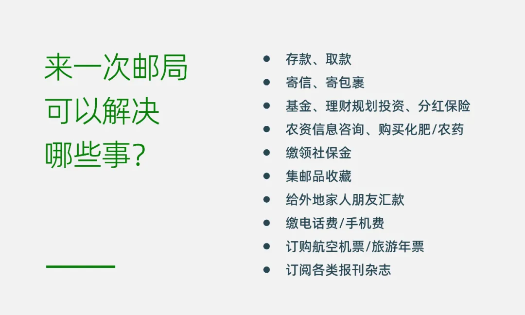 我們現在已經熟悉的快遞包裹、同城配送、網上購物,都是郵政在那個時期在國內首創的業務。