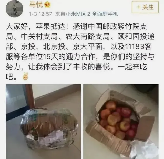 一個微博網友網上買了一箱子蘋果。郵政足足花了半個月的時間,才給他送到。收到的時候蘋果已經爛了個七七八八。