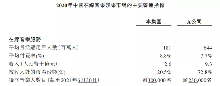 其中就委婉地提到了,網易雲和一家代號為 A 的公司,並稱國內在線音樂雙雄。而這家 A 公司,其實就是目前國內最大在線音樂公司——騰訊音樂。