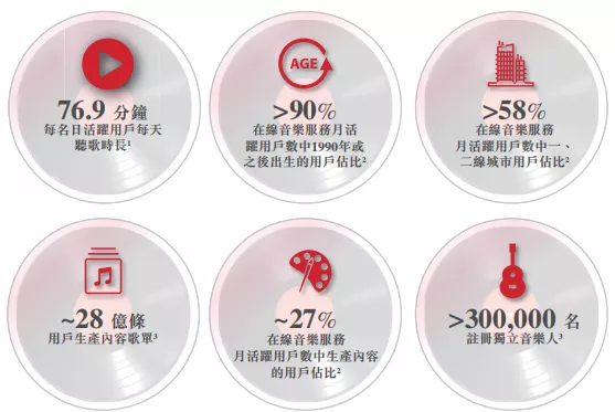 **由於坐擁 QQ 音樂、酷狗音樂、酷我音樂等多個平台,**家大業大的騰訊音樂月活指標也是一騎絕塵,直接到了 6.4 億人。