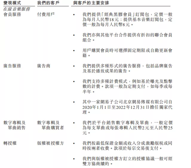 收入表第一欄中的 “ 在線音樂服務 ”**這玩意兒大家懂的都懂,大概就是黑膠會員、廣告服務、數字專輯和單曲的銷售還有版權授權等等。