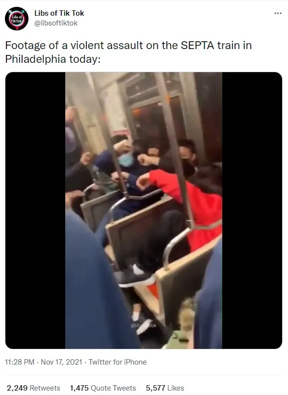 SEPTA發言人稱這起事件是“暴力和令人不安的”。他還説,沒有嚴重受傷的報道。