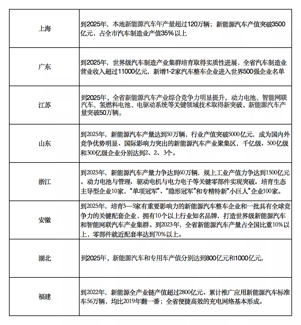 城叔注意到,2020年以來上海、廣東、山東、江蘇等省份均已發佈關於加快新能源汽車產業高質量發展的行動計劃,對於新能源汽車的產能規模、市場佔比以及市場滲透率等方面都有了具體的目標。