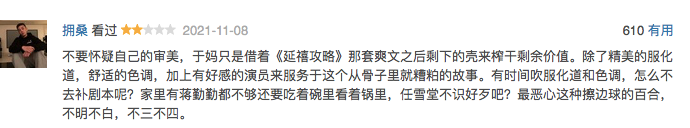 但遺憾的是,無論是哪個層面,於正都沒有做到位,甚至被網友貼上了“掛羊頭賣狗肉”的標籤。