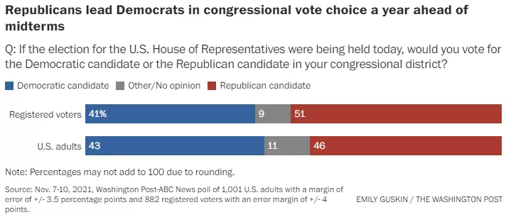 ● 華盛頓郵報和ABC聯合民調顯示,明年中期選舉共和黨支持率領先10% / 華盛頓郵報