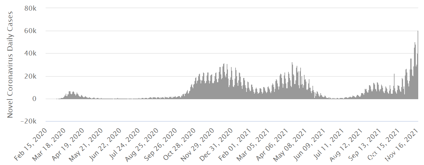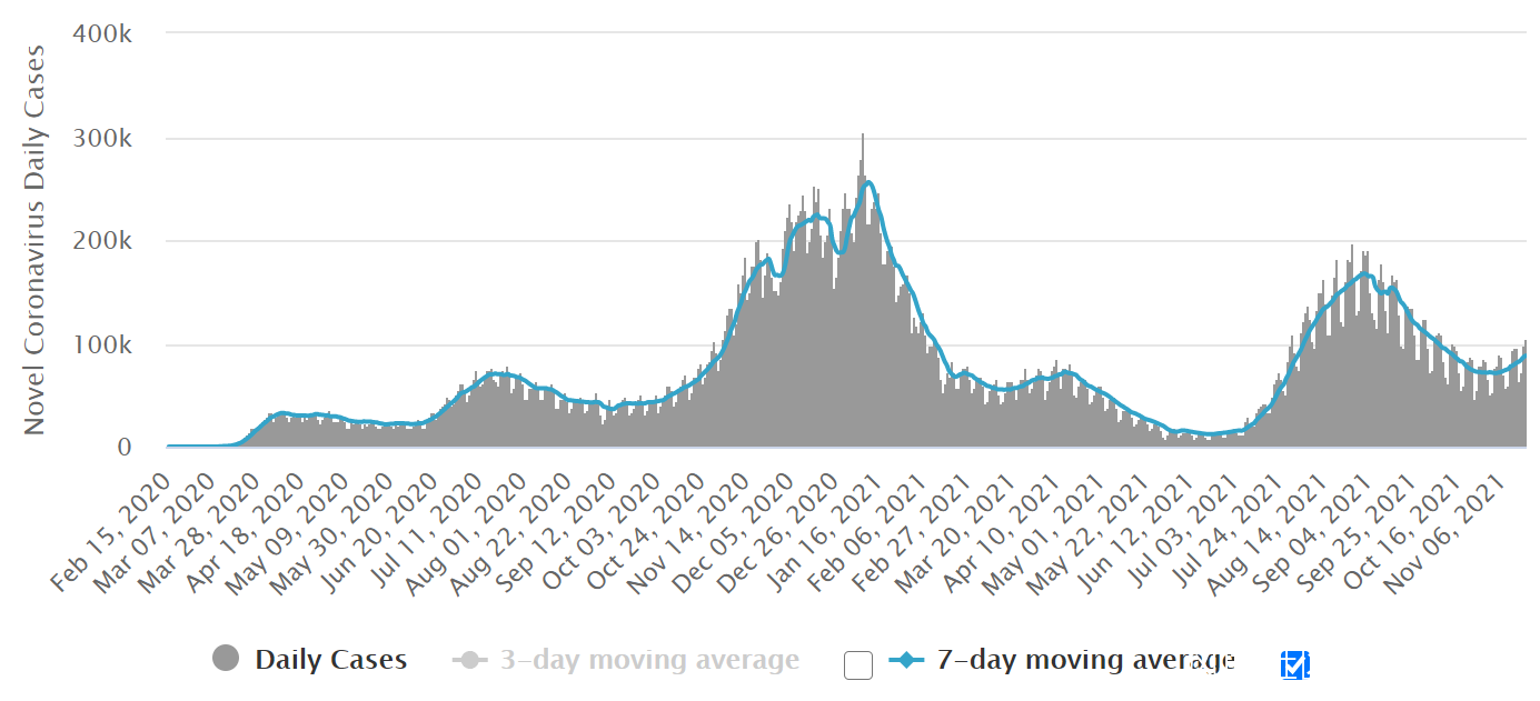 11月18日全球新冠疫情及疫苗接種更新:全球疫情迅猛反彈_風聞