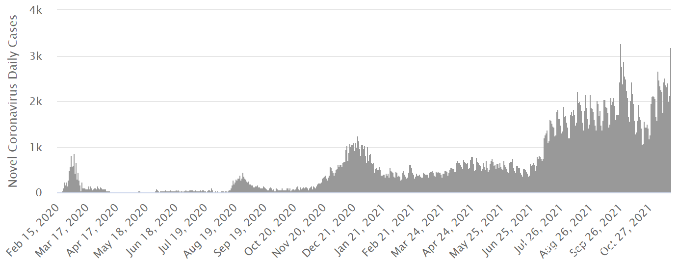 韓國單日新增確診病例(2020.02.15-2021.11.17**)**