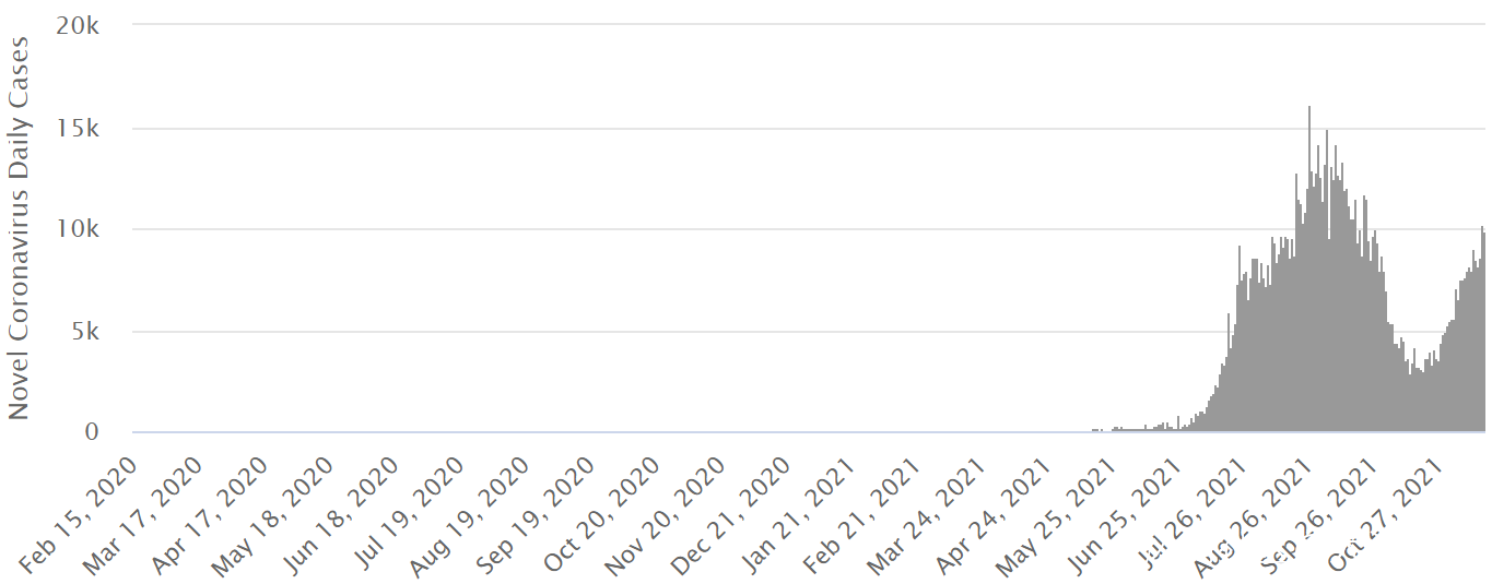 越南單日新增確診病例(2020.02.15-2021.11.17**)**