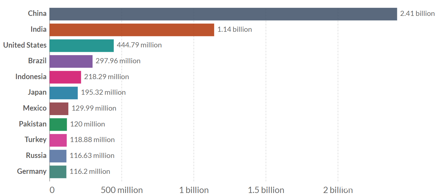 巴西、印尼、日本、墨西哥、巴基斯坦、土耳其、俄羅斯分列四到十位。