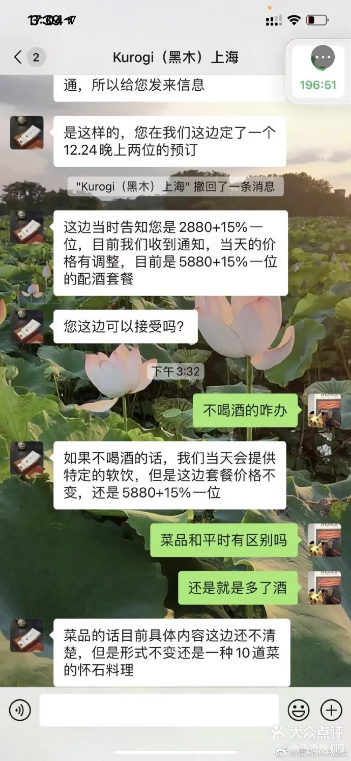 如果這就能成為突然漲價理由的話,那預訂有啥用呢?更別説上海絕大多數高級日料店,你預訂的話都要付定金,黑木的定金也有足足1000元一位。