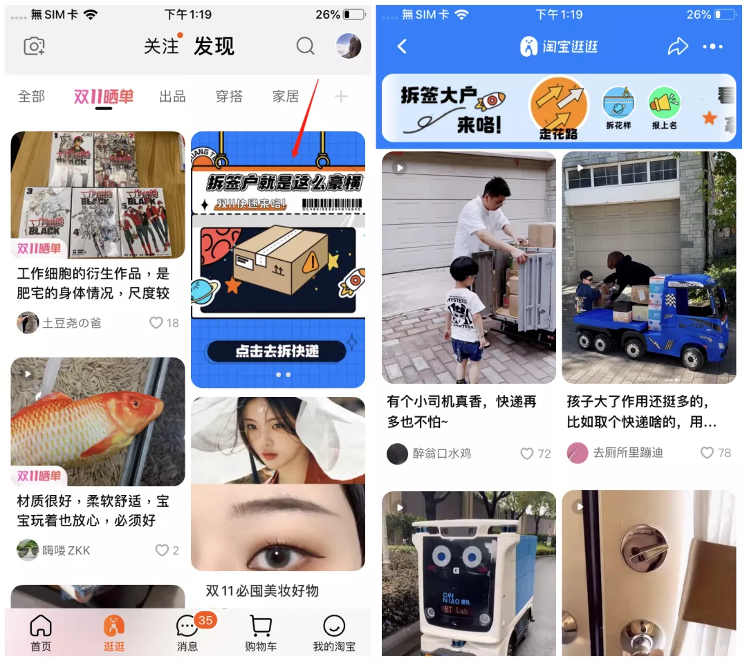 在淘寶逛逛上線的【雙11曬單】頁面裏,除了有正常曬單回血,還有各種意想不到的趣味大公開。