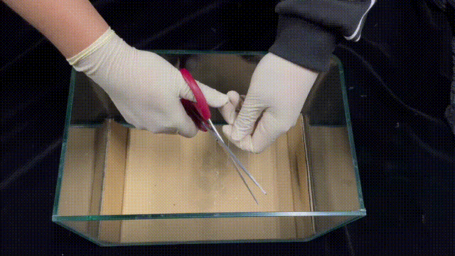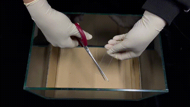 如果想要嘗試在空氣中剪玻璃片,請務必做好對玻璃碎屑的防範,比如戴手套、護目鏡等,並且依然在較深的容器中操作,方便打掃清理。