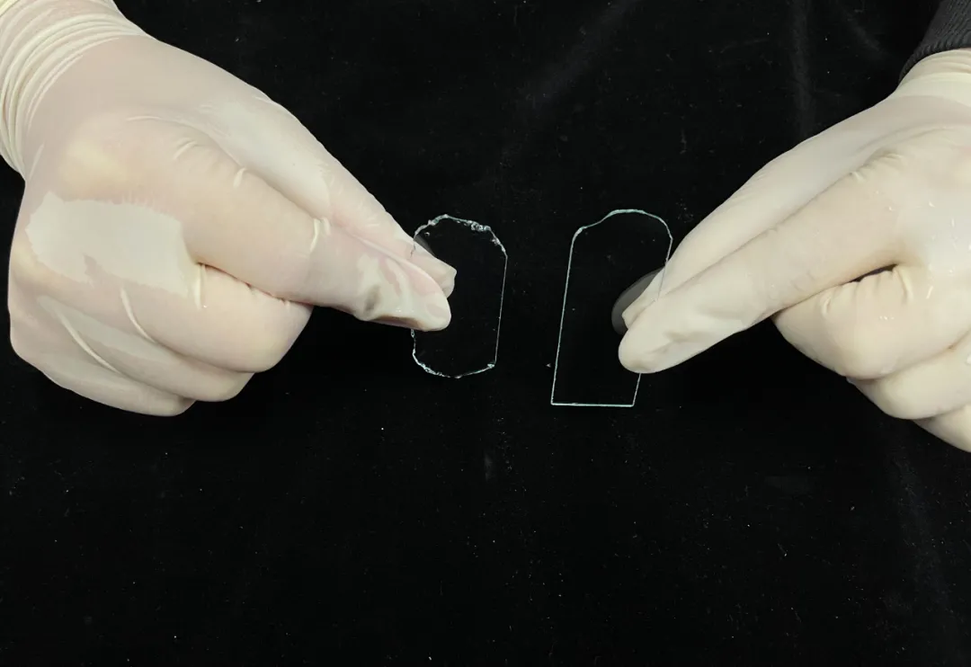 本次實驗我們選用的是所裏比較容易獲得的載玻片,因為它的厚度與硬度相對合適,並且成本比較低,大家儘量不要使用過硬或過厚的玻璃片,以免玻璃碎屑或碎塊迸濺到眼中或皮膚上。