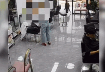 再看理髮師那緊急撤退的步伐和手勢,這位顧客事後的心理陰影恐怕不只驚嚇,還有頭髮。