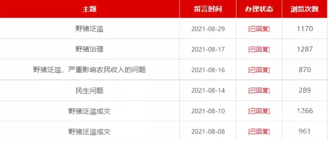 安徽金寨的書記信箱,從今年八月開始就不斷收到投訴野豬氾濫的消息。