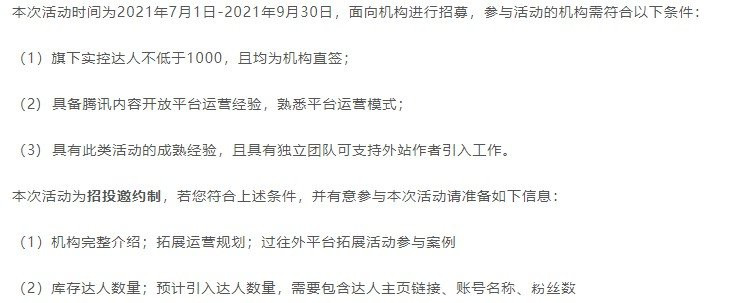 對於參加此次黎明計劃的時間和對象,騰訊方面給出的要求是這樣的。