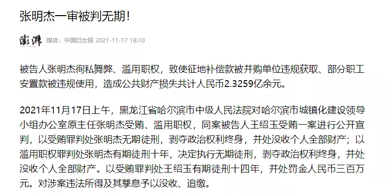 當代,但凡最後被清算的官員,一般都是加一個定於十八大以後,仍不收手。雖然事實上落地後被追查的例子並不少,但應該説這裏面確實有一條界限。以某個時間段為界,舊時代走向終結,在過去的十年來,整個政治環境,社會環境都發生了巨大的變化,這是新時代的撥亂反正。但這種改變不是一蹴而就的,現在和過去是發生聯繫的,新官僚隊伍是從舊官僚隊伍裏滋生的,這就必然有鬥爭與妥協。類似張明傑輩被查,被判,就是對過去的一種清算,而張明傑輩不死,就是這種向過去的妥協。