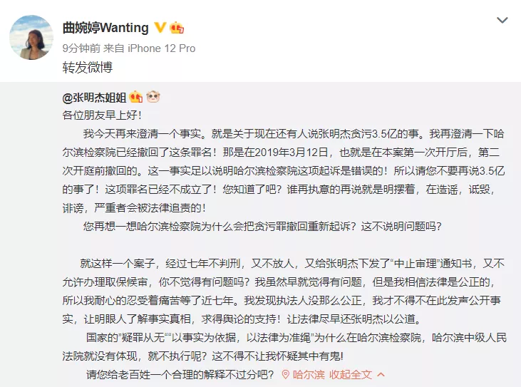 就事論事,張明傑作為一個典型的老工業區腐敗蛀蟲,連單位破產職工安置的錢也不放過,和貪污賑濟款有什麼區別?毫無疑問該殺。但不殺,這大概就是當代的政治博弈的結果。張明傑無疑是典型的死硬派貪官,而且曲婉婷也是典型的貪二代,與其説擔心她老孃還不如説在努力榨乾張明傑身上最後一點剩餘價值,為日後反華反中事業撈取資本,可謂禍害生禍害,一代傳一代。