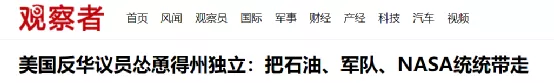 而且這種事還不是説説的,比如德克薩斯州人民對“美國人”的身份認同感向來不高,民風極其彪悍,該州是特朗普的鐵桿陣營,此前德州共和黨議員就表示,會在合適的時候提案搞德州“獨立公投”,如果美國當前的情況一直持續下去,類似德州這樣的州,説不定就真的自己建國玩兒去了。