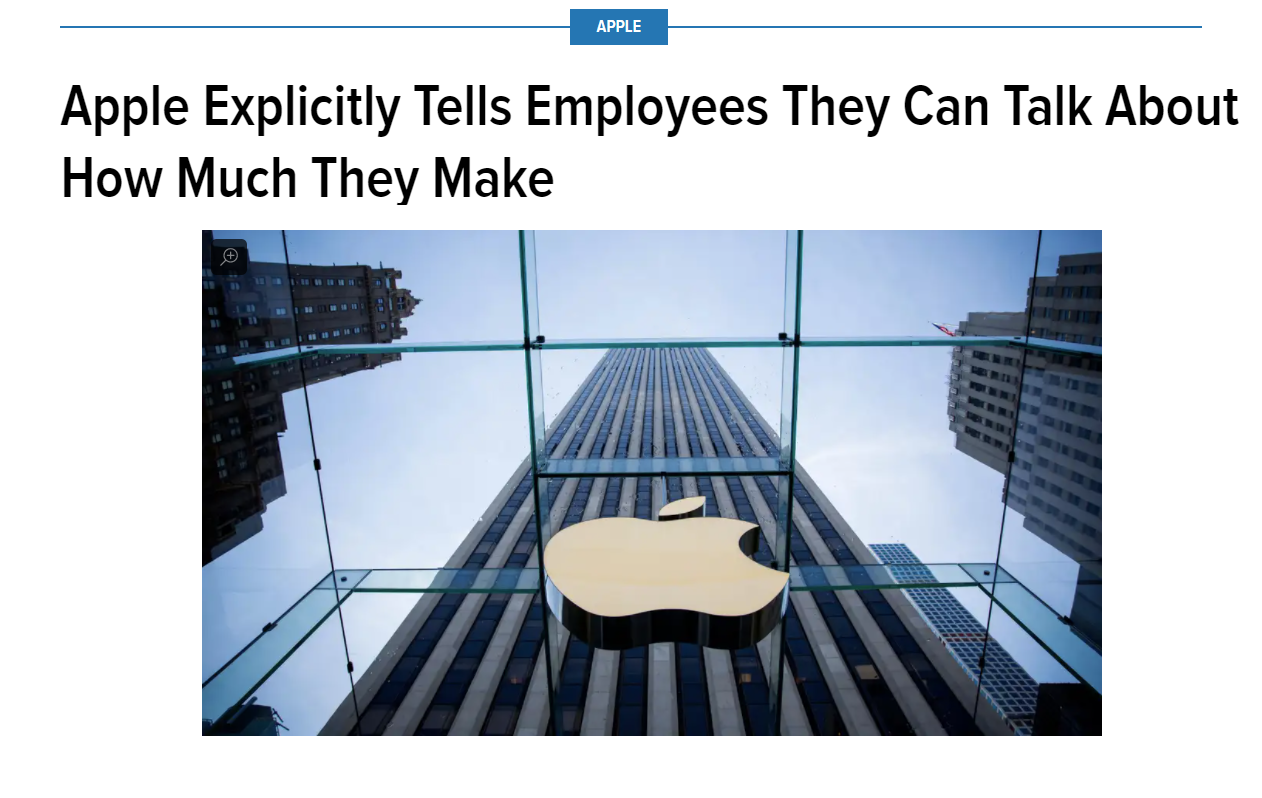 蘋果宣佈員工可以自由談論工資,你公司呢?_風聞