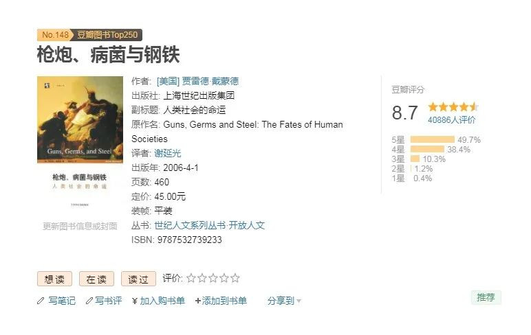 尤其《槍炮、病菌與鋼鐵》這一本,還是很多老師佈置給學生的必讀參考書!