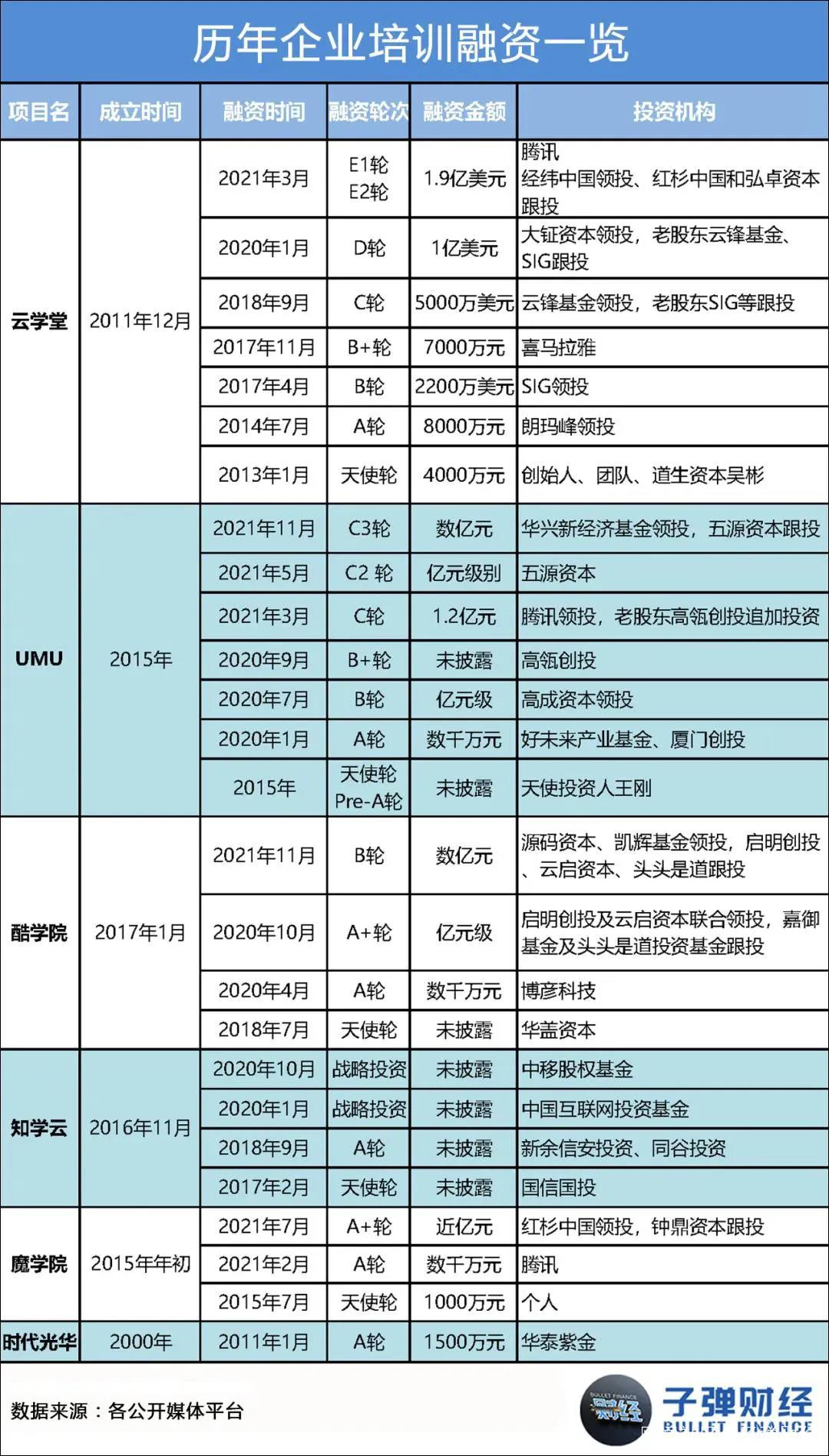 「子彈財經」注意到,其同行在今年也紛紛完成了多輪融資:UMU(三輪)、雲學堂(兩輪)和魔學院(兩輪)。