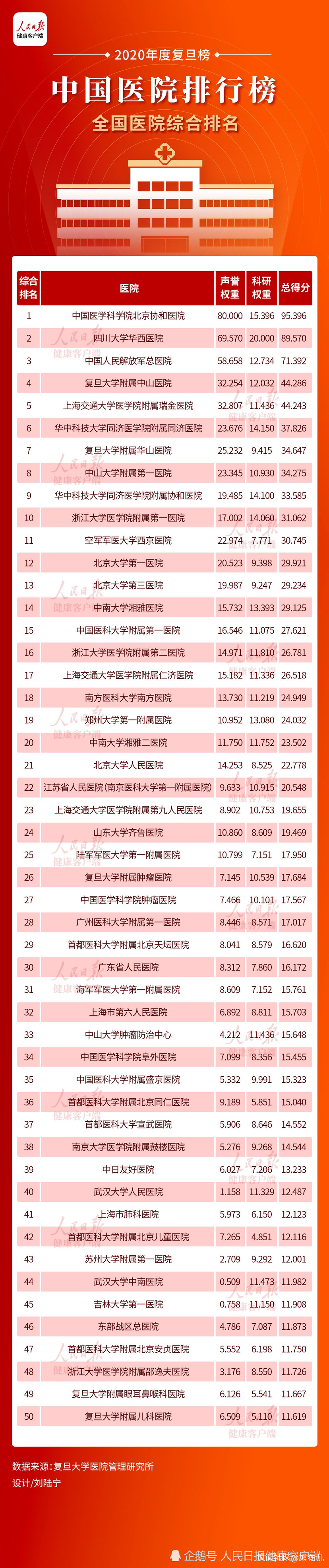 2020年度復旦版中國醫院排行榜發佈:深圳首入百強,前三甲北京佔兩席_風聞