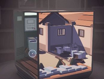 《籠中窺夢》的創意原點,受到了一個U3D技術演示視頻的啓發。視頻中展示了一種名為Stencil Buffer的着色器緩存遮罩技術,同時渲染多個物件,卻只在一個視角展示它們。所以這段動畫的立方體展櫃裏,每一面都展示着截然不同的世界。周棟當時覺得這個東西很有趣,技術上也不難實現,就決定以此做一個遊戲。