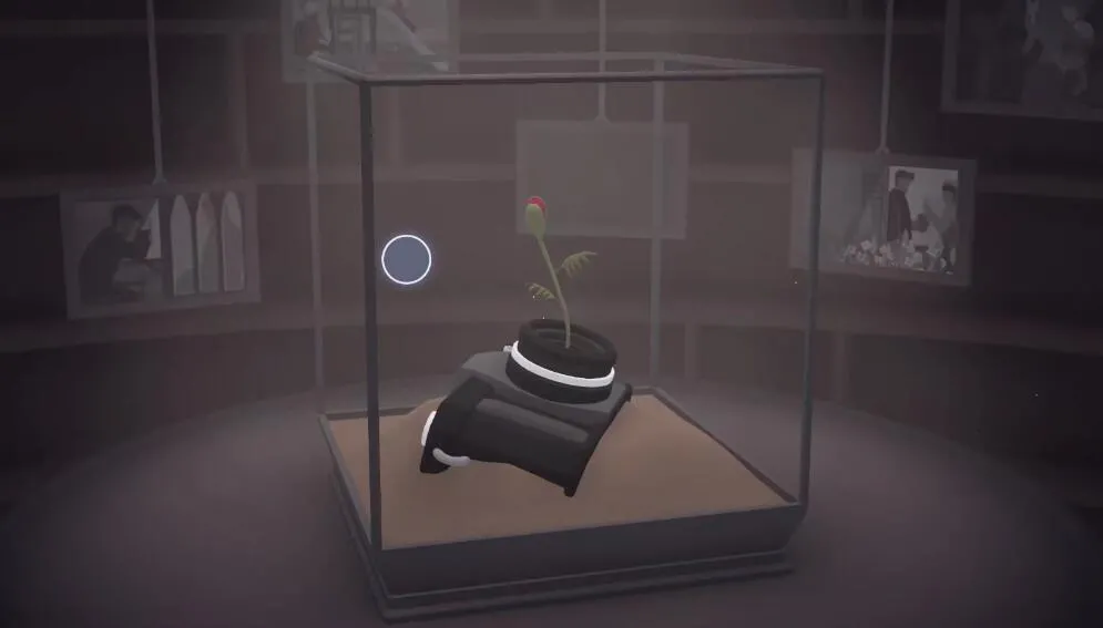 一台被關在盒子裏的相機。唯一不同的是,一顆種子從鏡頭裏探出了新芽。再次轉動視角,遊戲又將繼續,與我們此前做過的一樣,一次新遊戲就這樣無縫開始了。