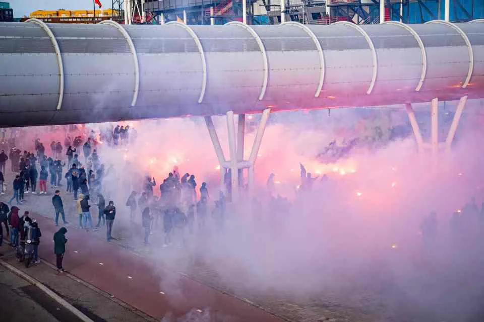 荷蘭警方發射水炮驅散了暴力抗議人羣,這些人開始在港口城市的一個主要購物區點火併燃放煙花。