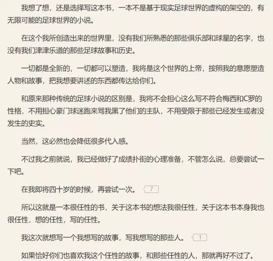 “從小到大隻要跟足球有關的所有東西我都很喜歡。我是通過足球學的地理,通過足球認識的世界上的國家,通過足球認國旗,我甚至可以因為足球去學外語,因為足夠熱愛,所以才能比其他人更願意花這麼多時間,甚至十幾二十年都寫足球小説。”