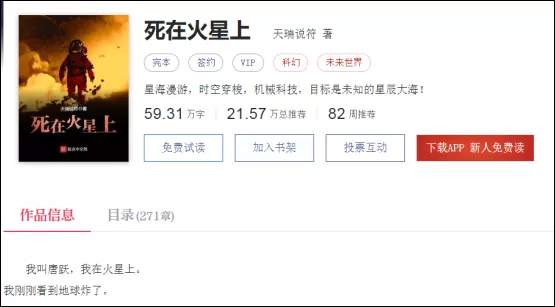 我順着去查了查才意識到,這篇名叫**《死在火星上》的小説並不簡單,出自95後作家天瑞説符之手,曾獲得過中國科幻最高獎“銀河獎”**。