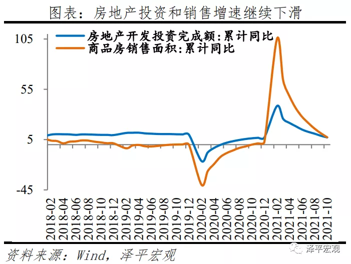 **房企銷售和資金回籠速度持續負增長,10月商品房銷售面積和銷售額同比分別為-21.7%和-22.6%,分別較9月下滑8.5和6.8個百分點。10月房地產開發資金來源同比-9.5%,較9月回升1.7個百分點。****供給端,**在“三線四檔”融資管理規則背景下,房企資金承壓,部分房企陷入經營困境,導致降價促銷活動常態化,各地湧現一批工程抵押房;**需求端,**在限購限價、增收房產交易税費、管制經營貸、收緊房貸額度、新房集中供應、重劃學區、“憑房票買房”、房地產税將試點等調控房價、保障剛需和抑制學區房炒作的政策下,部分城市房價下跌,居民購房門檻提升、需求下降,對期房的信任程度持續下降,觀望情緒漸濃。**房地產市場持續降温,“金九銀十”促銷難挽頹勢;****房企資金回籠速度整體來看仍較慢,但個人按揭貸款部分有所改善。**9月底房地產金融工作座談會提出“保持房地產信貸平穩有序投放”後,部分城市房貸審批加快;10月房企從國內貸款、自籌資金、定金及預收款、個人按揭貸款到位的開發資金同比分別為-27.2%、-2.8%、12.9%和1.0%。
