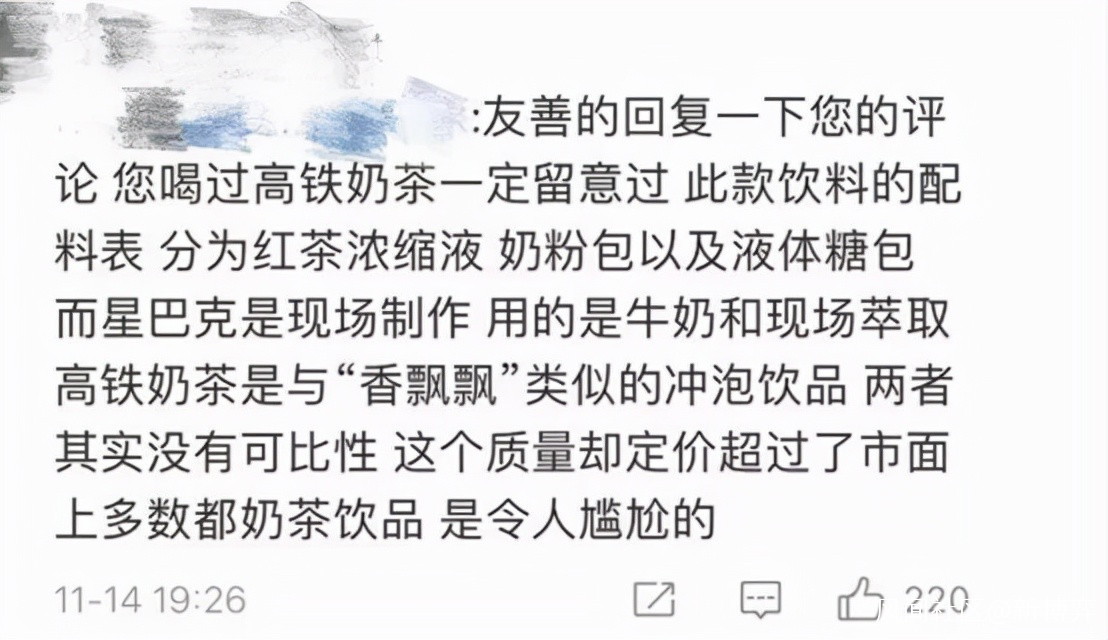其二,口味不佳,被網友指責味道不如香飄飄茶包。更有細心的網友指出,高鐵奶茶的配料表分為紅茶濃縮液、奶粉包以及液體糖包,是沖泡類飲品。