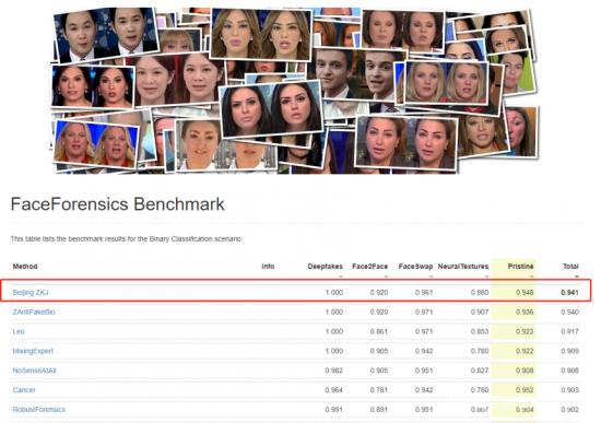 比如,前不久,中關村科金就在FaceForensics++Benchmark(國際知名深度偽造學術榜單)通過基於自有億級海量圖片訓練的人臉識別算法和獨有的AI技術將綜合準確率提升至94.1%,成功登頂榜首,將我國的深度偽造防偽能力再提升一個段位,處於國際領先水平。