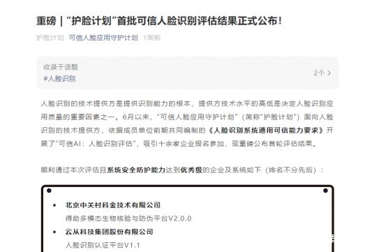 在中國信通院牽頭組織的“可信AI:人臉識別評估”活動中,順利通過本次評估且系統安全防護能力達到優秀級的企業就有中關村科金、雲從科技等這樣專注AI領域的玩家。